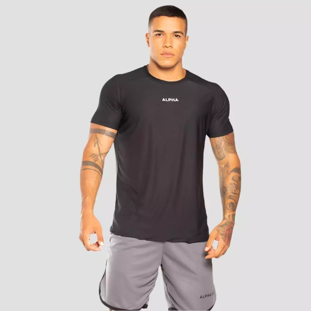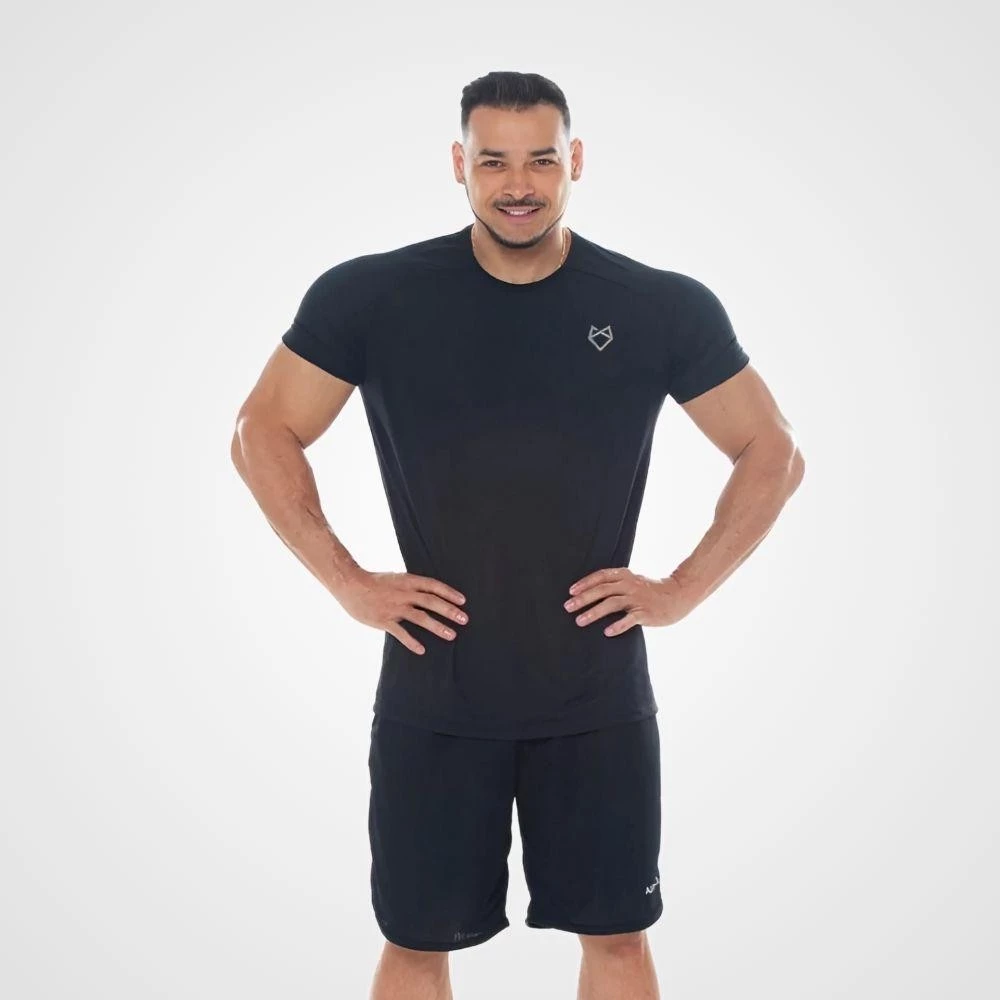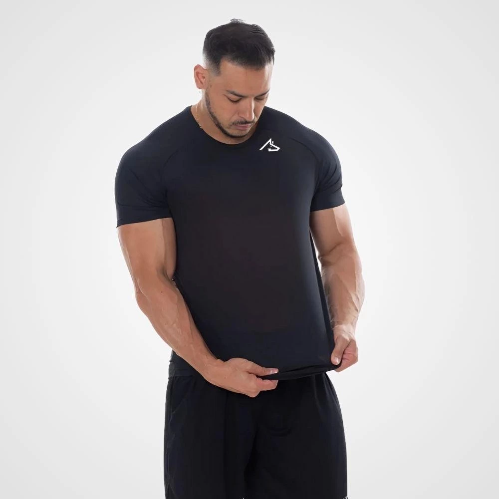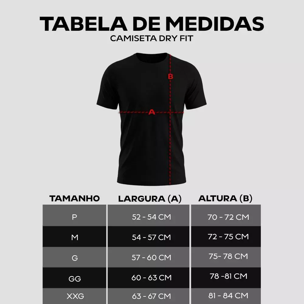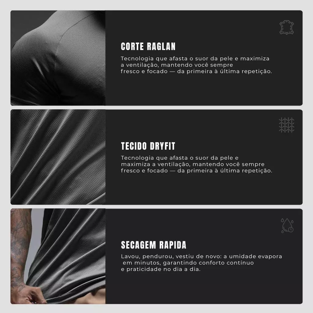 Cada camiseta foi desenvolvida com tecido Dry Fit de alta performance, que absorve o suor e seca rápido para você treinar sem desconforto. O tecido é ultra leve, respirável e tem fibras que garantem máxima ventilação, mesmo nos dias mais quentes. A modelagem atlética foi pensada para valorizar o corpo sem apertar, com acabamento premium e caimento perfeito. Ideal pra academia, corrida, dia a dia ou qualquer treino.